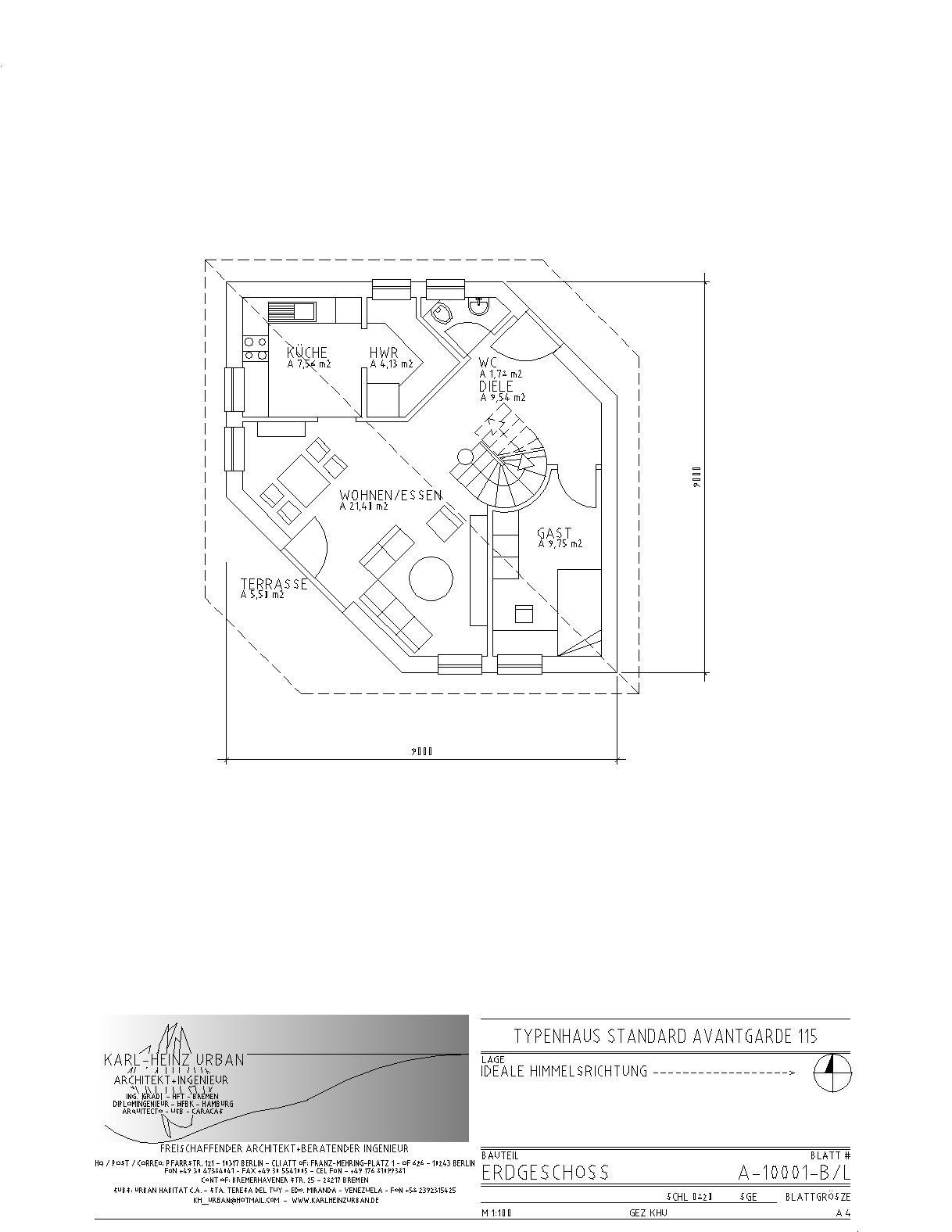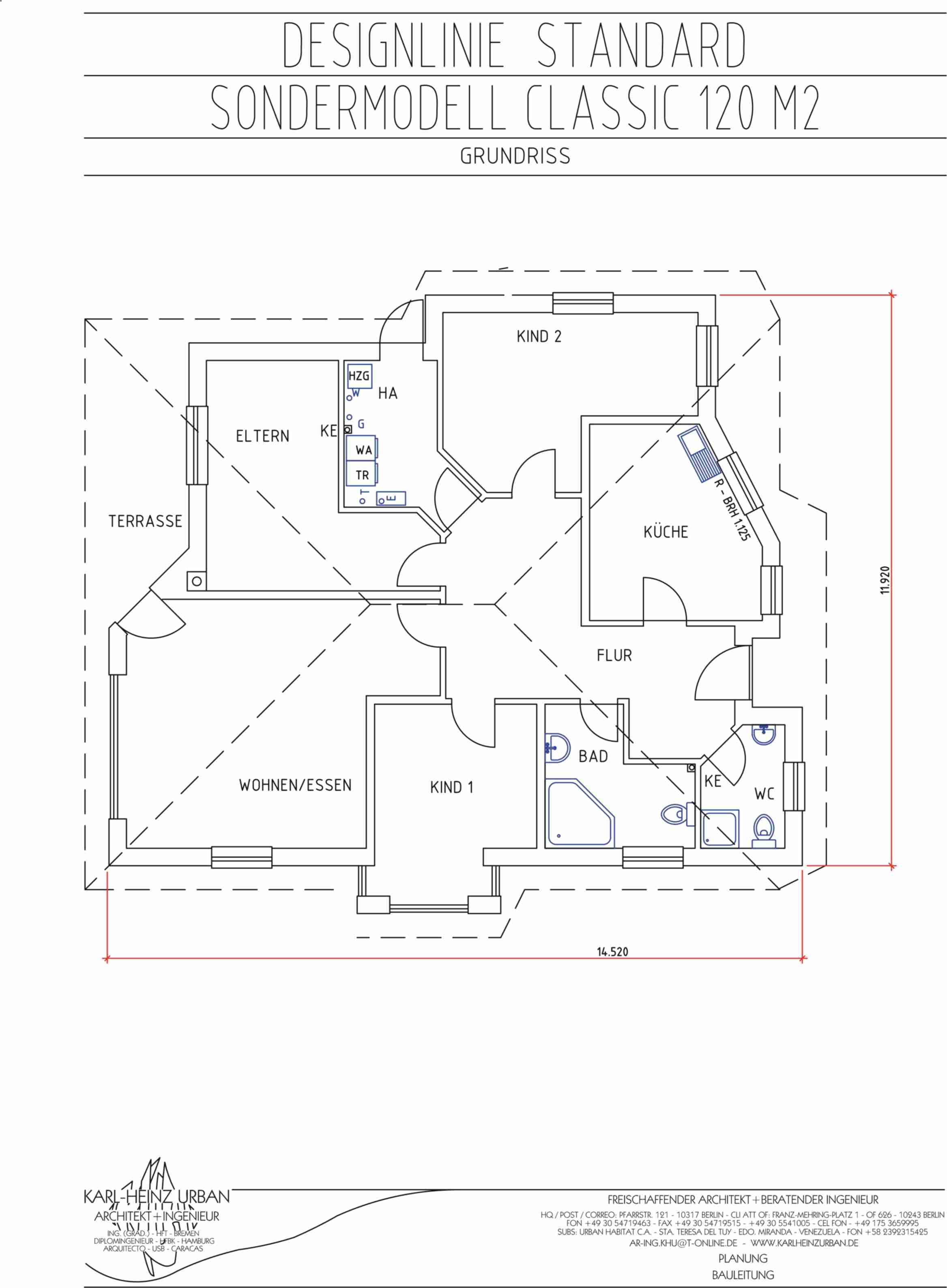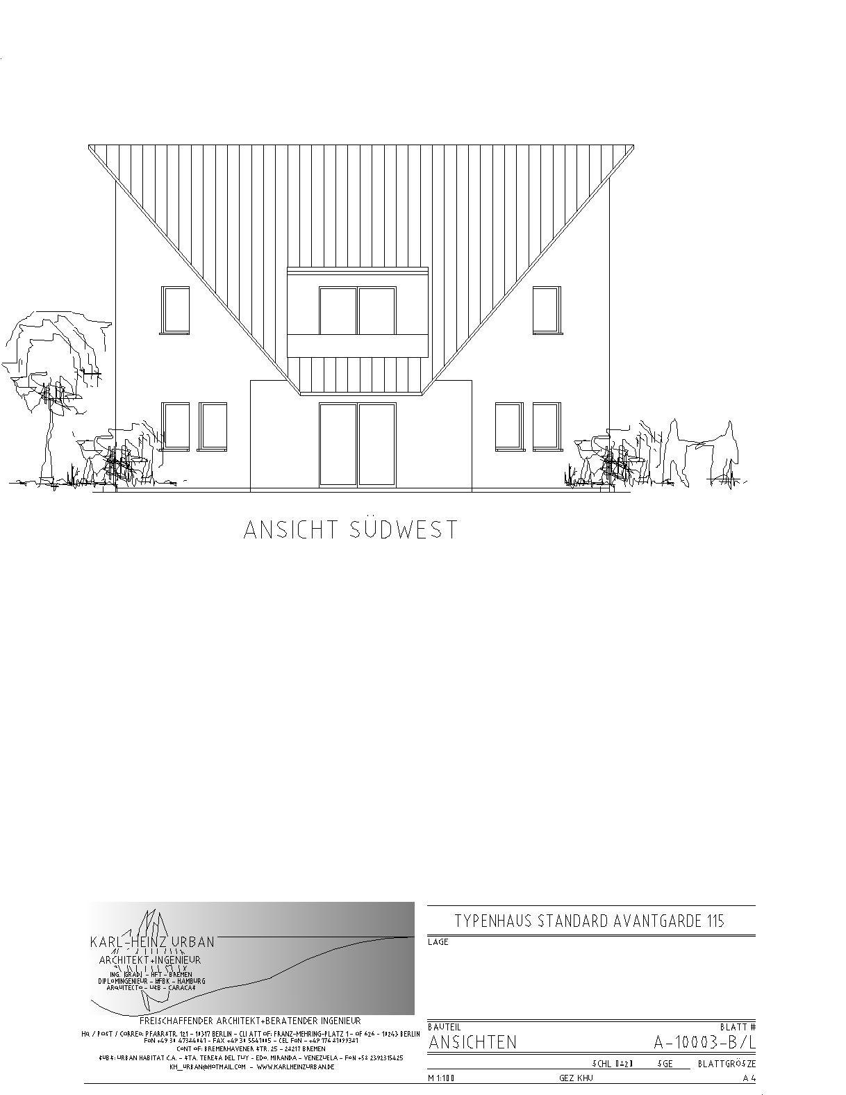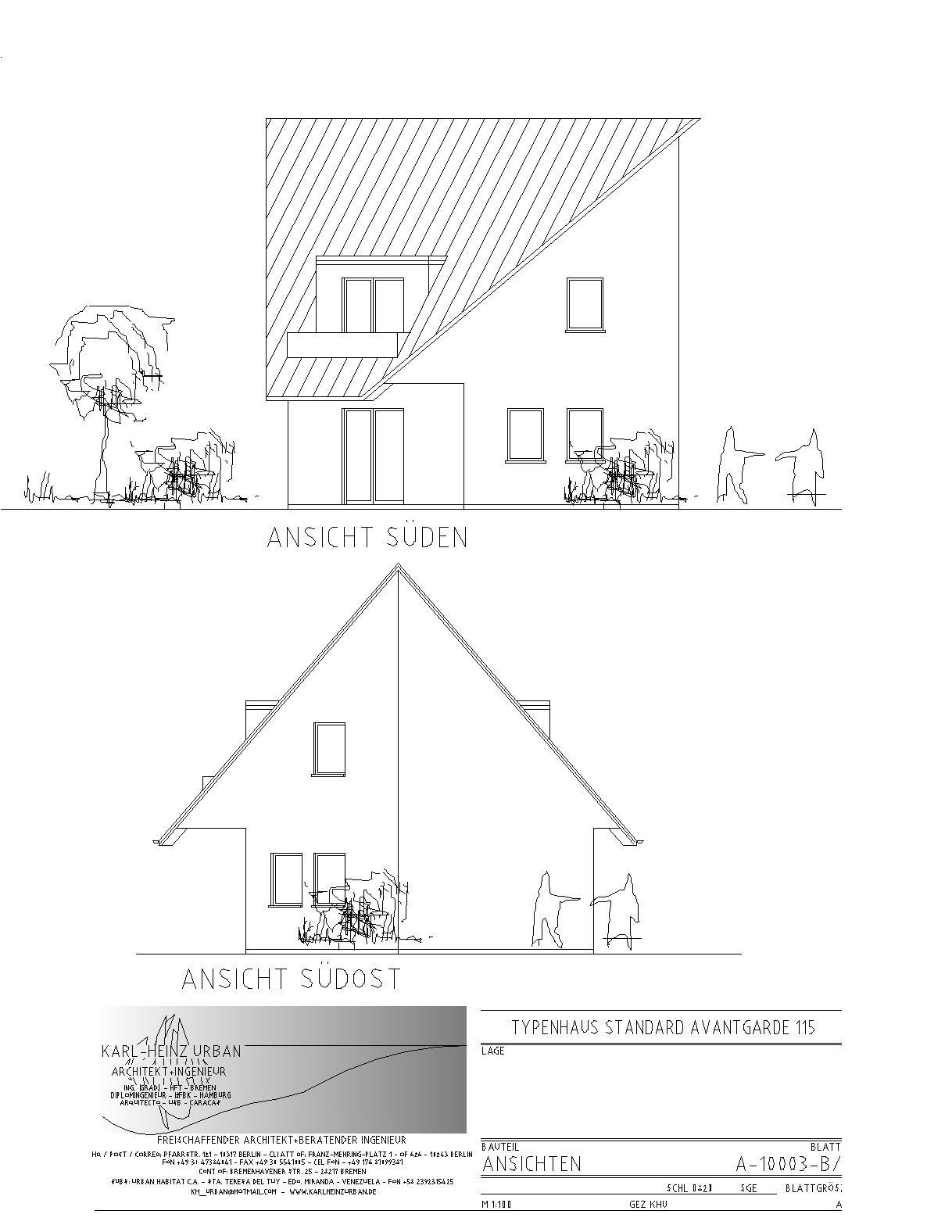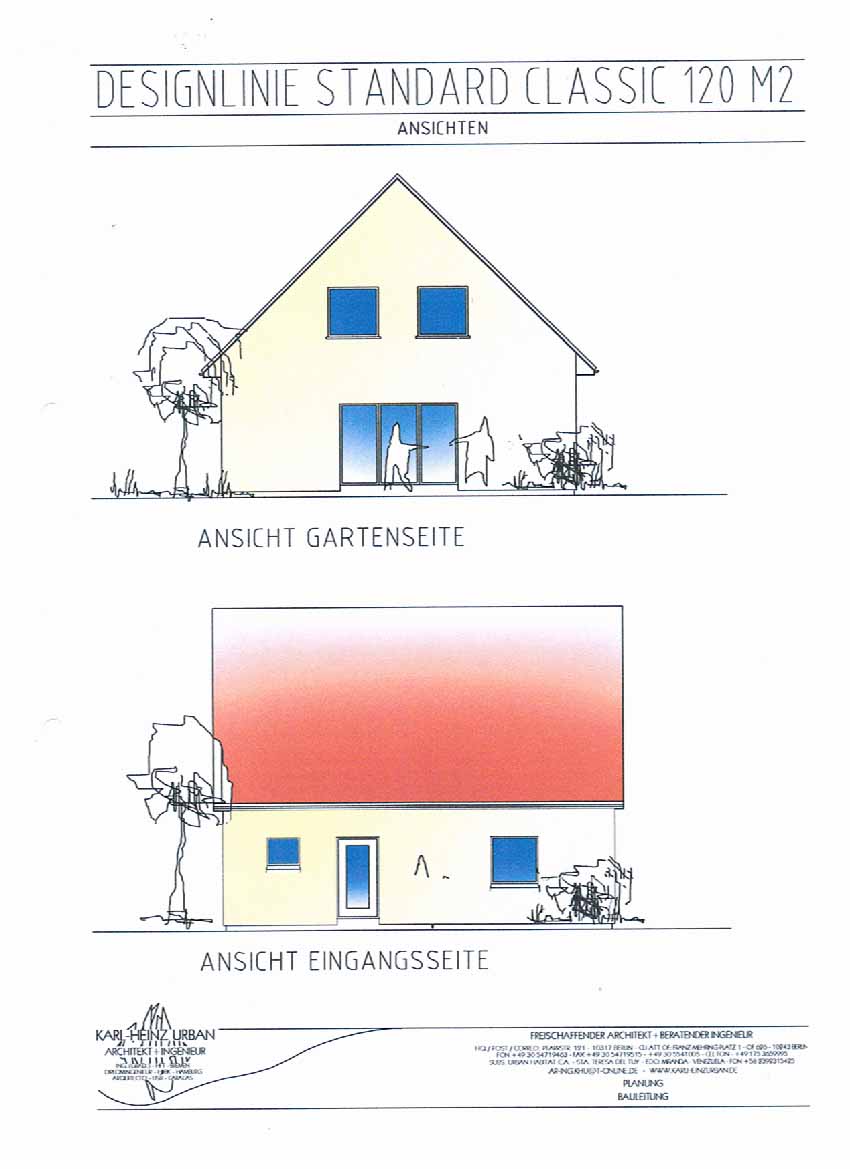 Von meinem Büro werden u.a. "Standard"-Einfamilienhäuser entworfen. Sie können nach Wunsch gestaltet und ausgestattet werden, sowohl eingeschossig (Bungalows) als auch mit ausgebautem bzw. ausbaufähigem Dachgeschoss.